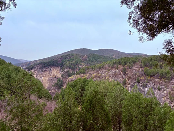 来到一线天处,狭窄的谷道只容许两人并行,两侧是耸立的奇峰,大家团结互助,共同前行,穿越狭长谷道,终于抵达景色旖旎的观景台,自上而下俯瞰藏龙涧,发现峡谷长数公里,开阔处宽数丈,紧窄处伸两臂即可摸到两侧峭壁,两侧如刀劈斧削,最高处逾百米,岩壁上的青苔泛着翡翠色的光,好似片片龙鳞。当行至独秀峰处的"锦屏春晓"时,四周群山环抱,层峦叠嶂,危峰壁立,这般景致美得让人心醉。